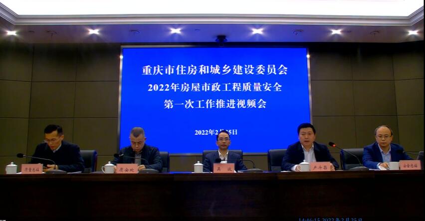 2022年2月25日下午,我司全体安管人员在四楼会议室集中观看了“重庆市住房城乡建委2022年房屋市政工程质量安全第一次工作推进视频会”。 视频会议中,市安管总站通报了2021年“四不两直”检查总体情况和区县安全工作开展情况,对建设中存在的主要问题进行了分析。