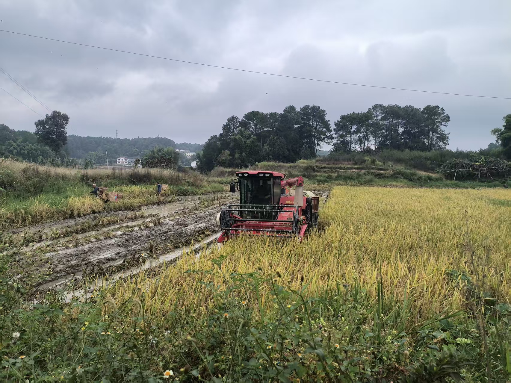 接到镇政府求助后,城建集团第二分公司迅速响应,主动担当,第一时间组织力量投入抢收一线。公司紧急调配农机服务中心联合收割机,并安排专人全程配合协调,确保作业高效推进。抢收过程中,作业人员科学规划路线,结合田间实际情况精准施策,在保障安全的前提下争分夺秒推进收割进度,最大限度缩短稻谷滞留田间时间,有效降低霉变风险。